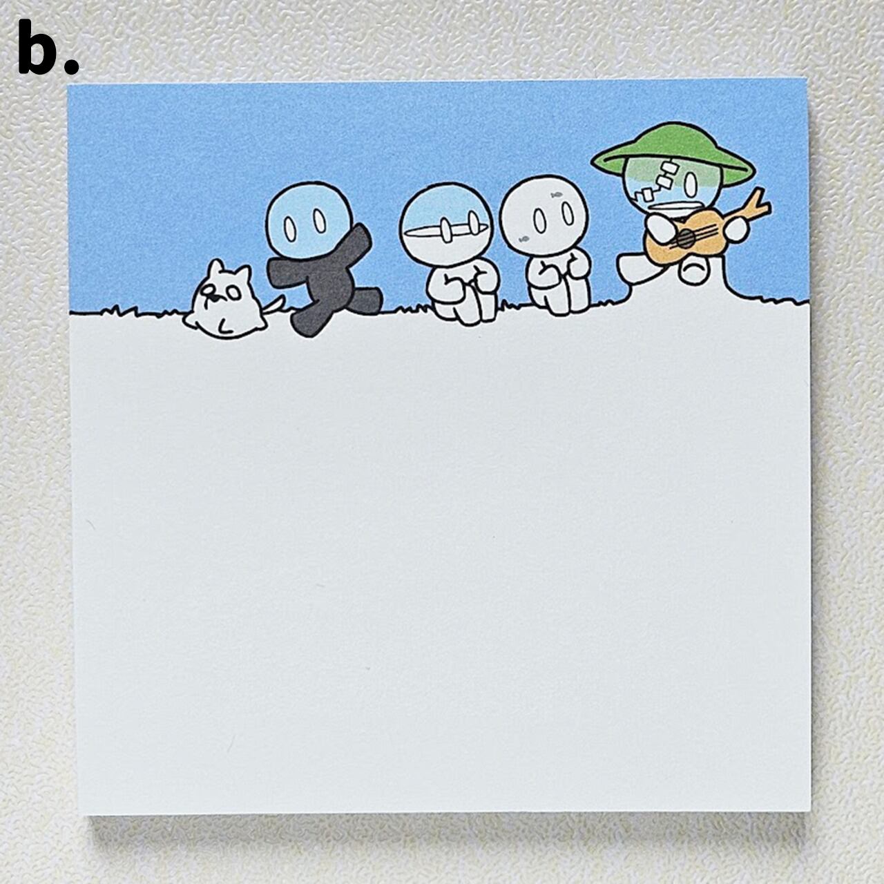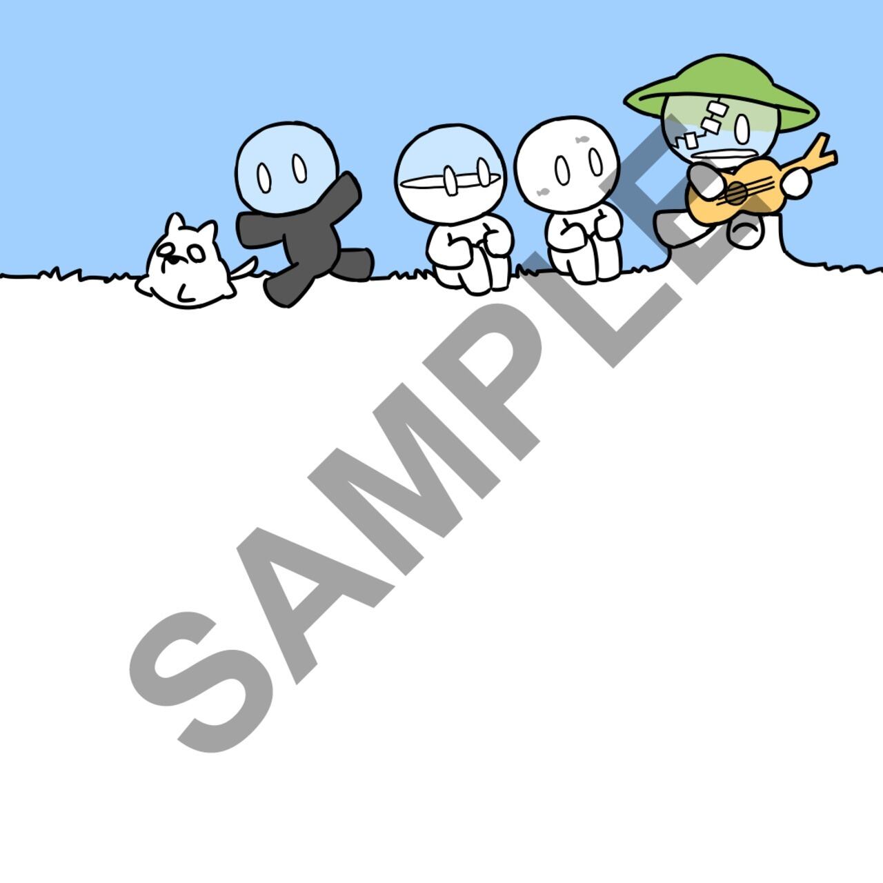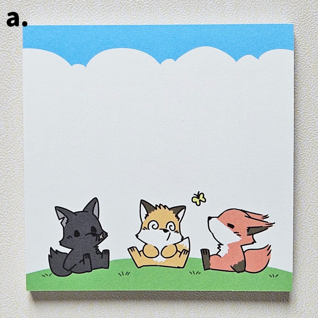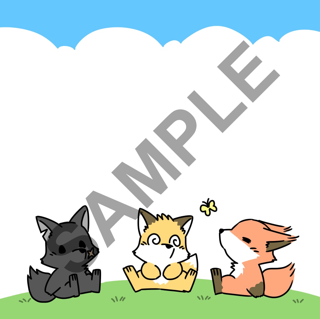 日向ぼっこするきつねくん・コッペくん・くろくろくんが描かれてます。